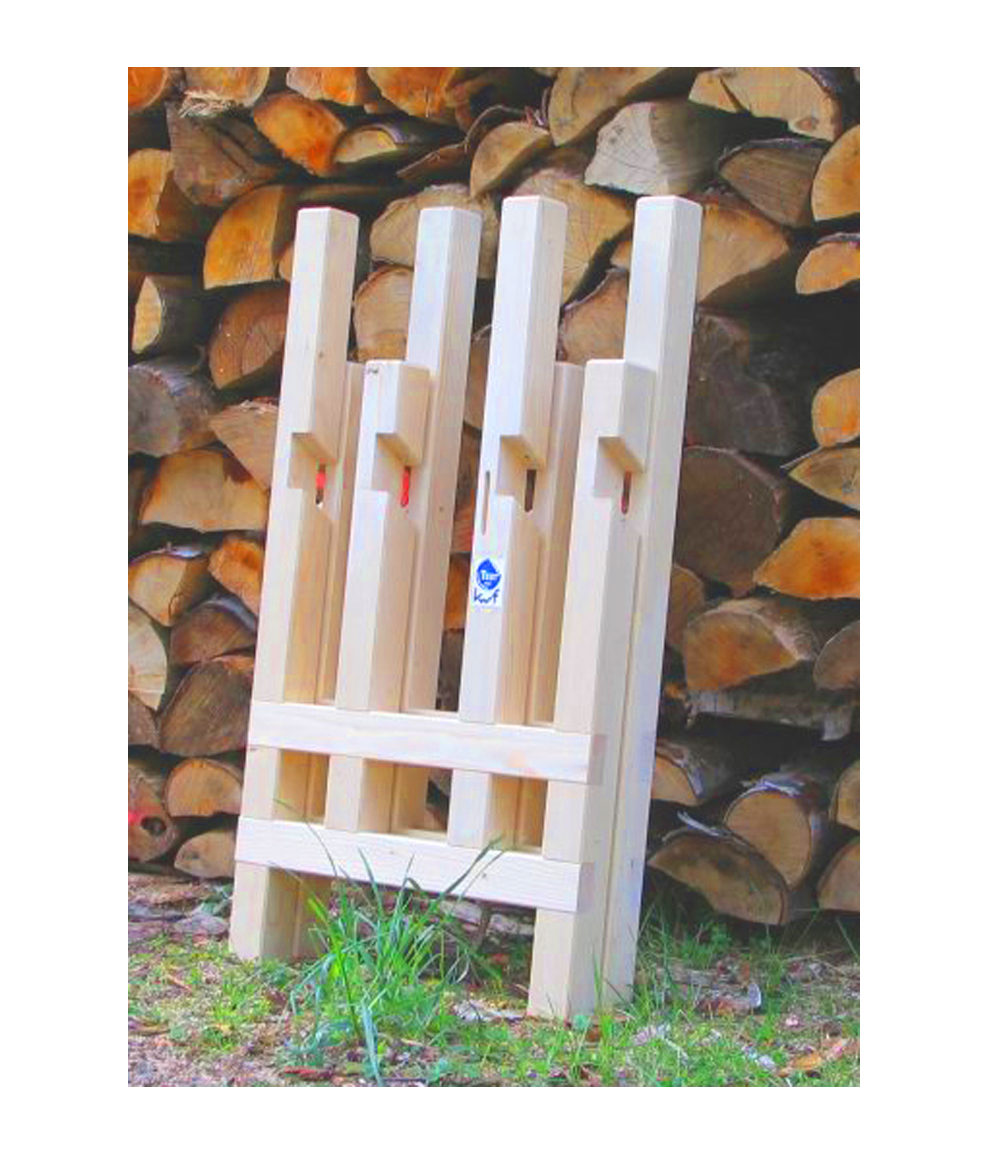 Die Motorsäge kann aufgrund der besonderen Bauart des Sägebocks mit ihrem Krallenanschlag direkt am Schnittgut abgestützt werden. Somit wird ein Mitdrehen des Holzes und ein Ausschlagen der Säge verhindert. Der Sägebock besteht zur Minimierung der Unfallgefahr komplett aus Holz und kommt ohne jegliche Metallteile aus. Er leistet somit einen wichtigen Beitrag zur Unfallverhütung.